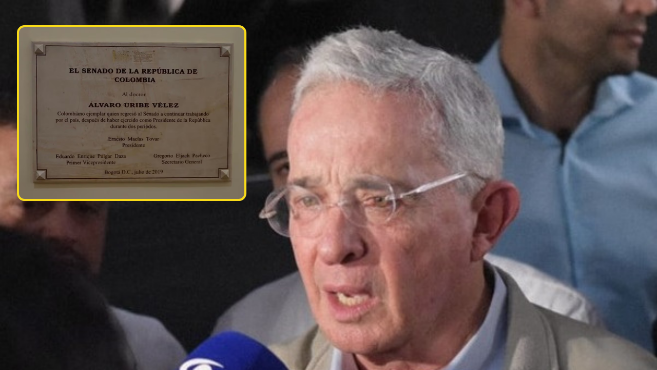 El diputado del Senado Esmeralda Hernández presentó una propuesta para eliminar la placa, que es el ex presidente de Álvaro Uribe Vélez en el Capitolio